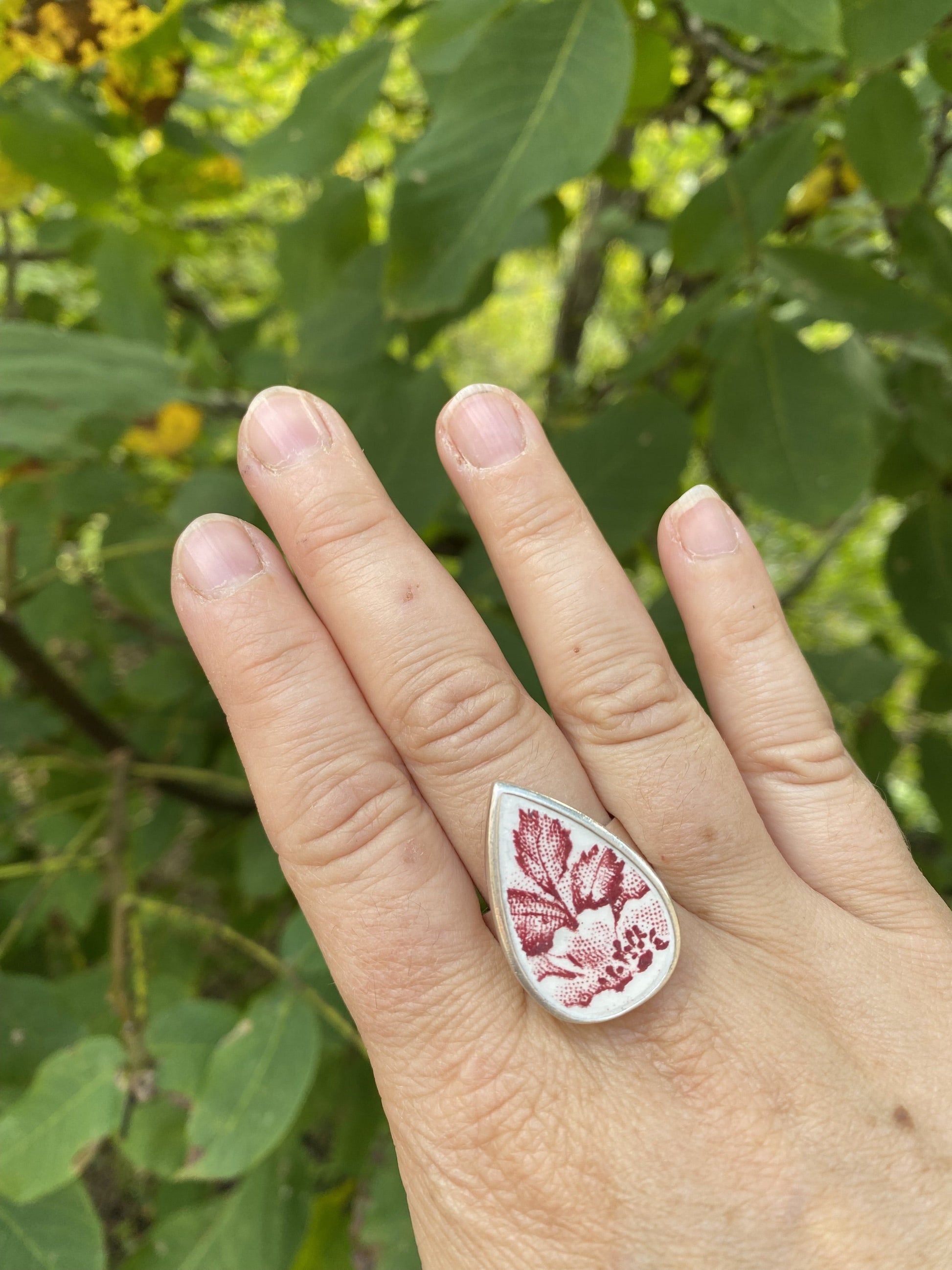 La Théière Ébréchée vous propose une BAGUE UNIQUE en faïence upcyclée, provenant d’une assiette ancienne "Terre de Fer" qui vous fera briller par son originalité et sa singularité