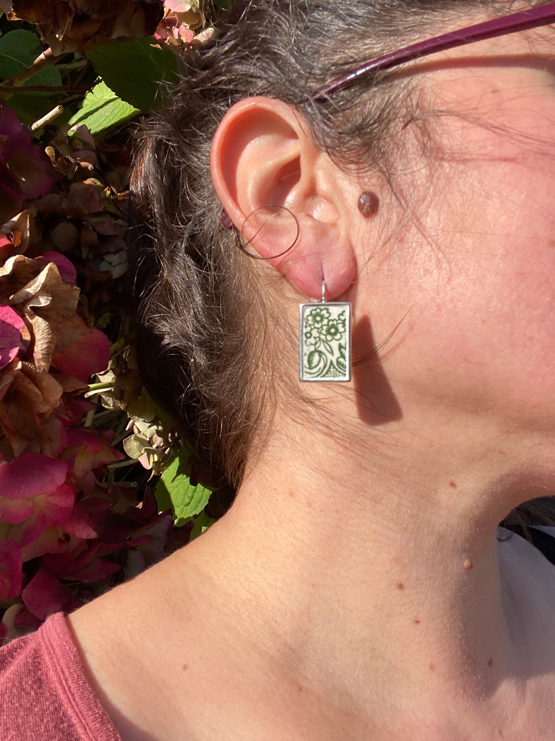 La Théière Ébréchée vous propose des boucles d'oreilles UNIQUEs en céramique upcyclée, provenant d’une assiette ancienne qui vous fera briller par son originalité et sa singularité