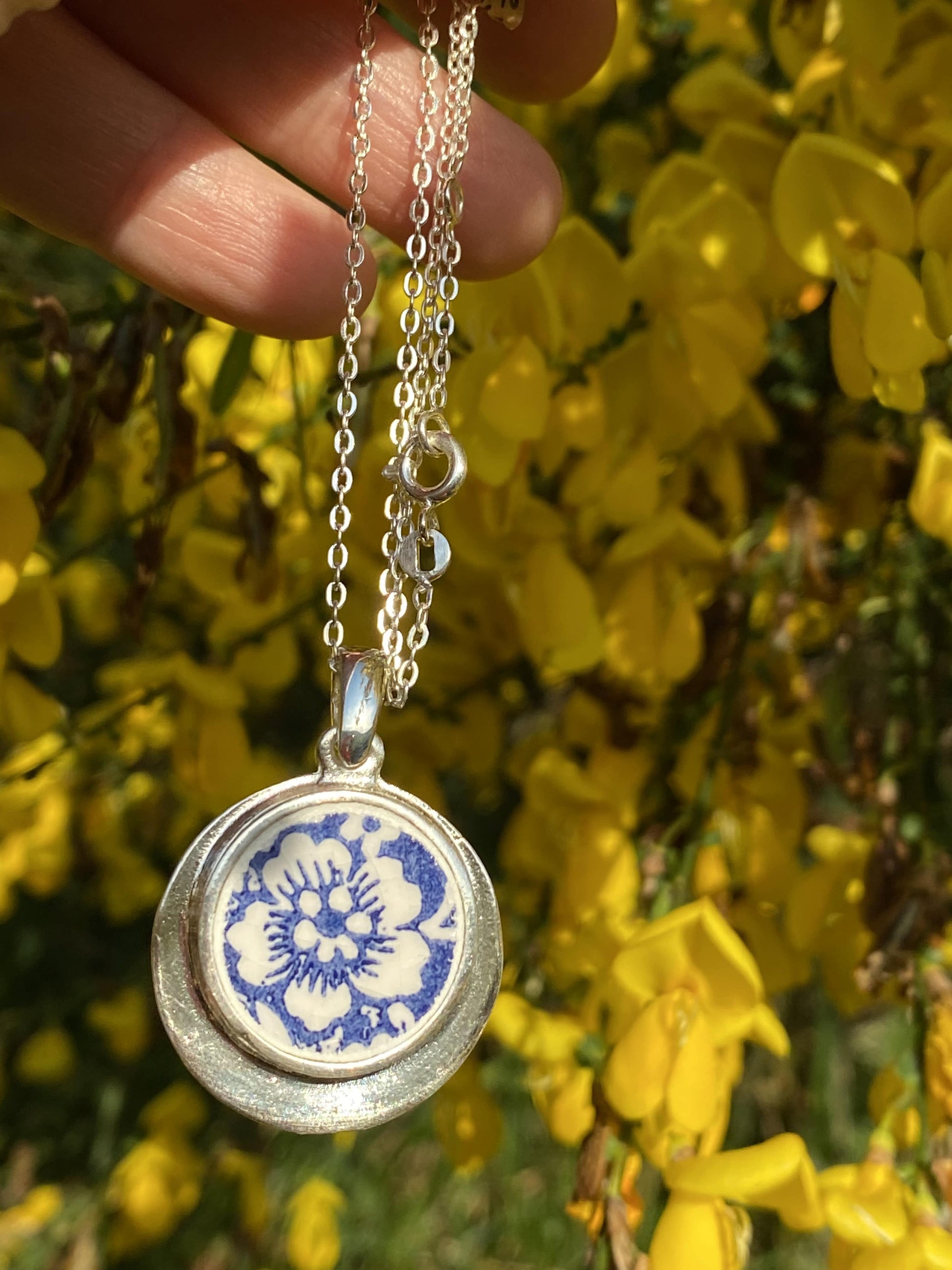 ♻️ Matériaux : Médaillon réalisé à partir d'une assiette cassée en faïence